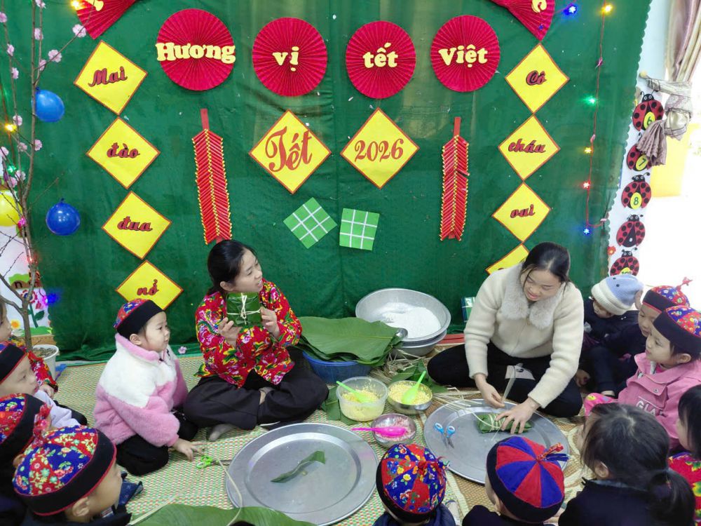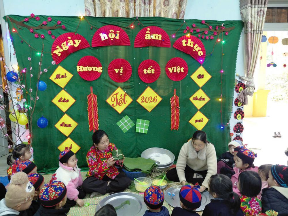 Hòa chung không khí rộn ràng đón Tết Nguyên đán cổ truyền của dân tộc, ngày 30/01/2026, Trường Mầm non Thiện Long đã tổ chức hoạt động Bé trải nghiệm Tết tại điểm trường Trung tâm và Ngày hội ẩm thực với chủ đề “Hương vị Tết Việt” tại hai điểm trường Nà Lù và Tồng Nộc.