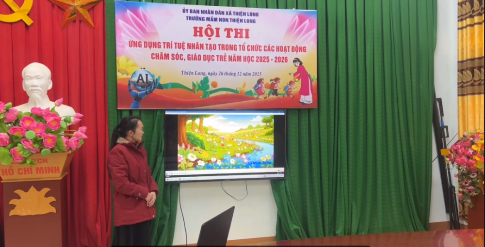 Ngày 26/12/2025, Trường Mầm non Thiện Long đã tổ chức Hội thi “Ứng dụng trí tuệ nhân tạo trong tổ chức các hoạt động chăm sóc, giáo dục trẻ năm học 2025 – 2026”. Hội thi thu hút sự tham gia của 14 giáo viên trong toàn trường, tạo nên không khí thi đua sôi nổi, sáng tạo và giàu tính chuyên môn.Ngày 26/12/2025, Trường Mầm non Thiện Long đã tổ chức Hội thi “Ứng dụng trí tuệ nhân tạo trong tổ chức các hoạt động chăm sóc, giáo dục trẻ năm học 2025 – 2026”. Hội thi thu hút sự tham gia của 14 giáo viên trong toàn trường, tạo nên không khí thi đua sôi nổi, sáng tạo và giàu tính chuyên môn.