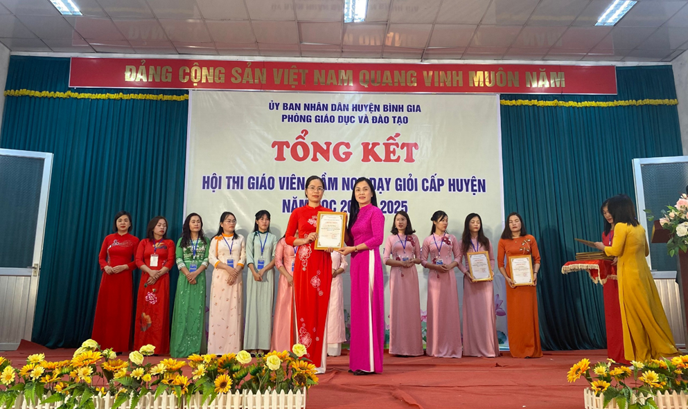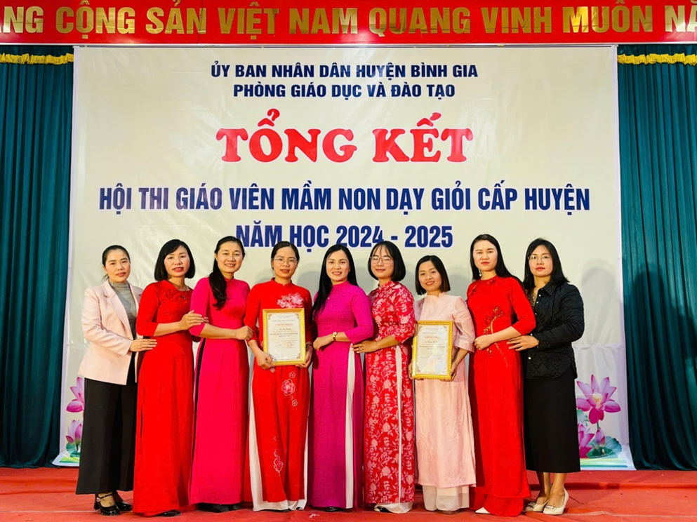 Kết quả Hội thi Cô giáo Viên Thị Thương và cô giáo Hoàng Thị Tiên đạt danh hiệu Giáo viên dạy trong hội thi “Giáo viên giỏi cấp Huyện năm học 2024 - 2025” do Phòng giáo dục huyện Bình Gia, tỉnh Lạng Sơn tổ chức.