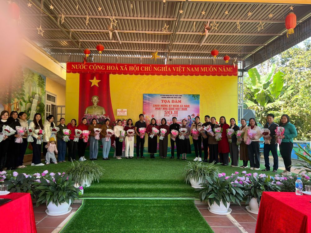 Trong buổi toạ đàm, đại diện Ban giám nhà trường đã gửi những bó hoa tươi thắm đến toàn thể cán bộ, giáo viên, nhân viên – như lời cảm ơn chân thành dành cho những nỗ lực và sự tận tâm trong hành trình “gieo chữ” cho bao thế hệ học trò. Những nụ cười rạng rỡ, những ánh mắt xúc động đã làm cho không khí buổi lễ thêm phần ý nghĩa.