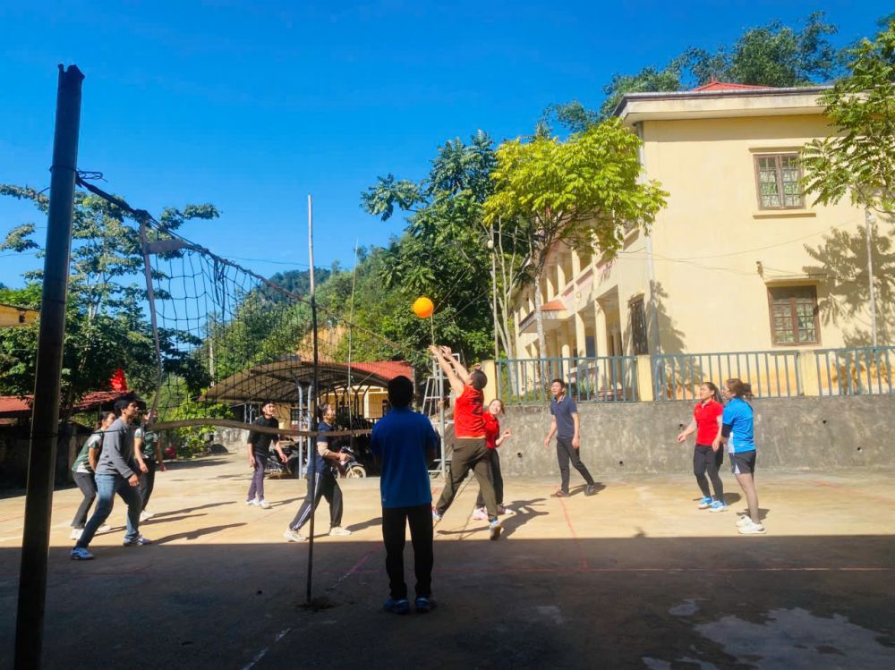 Mở đầu chương trình là hoạt động giao lưu bóng chuyền giữa các tổ chuyên môn trong nhà trường, phụ huynh học sinh và người dân trên địa bà thôn Khuổi Kiếc. Những pha bóng đẹp, những tiếng reo hò cổ vũ đã mang đến bầu không khí sôi nổi, gắn kết, thể hiện tinh thần đoàn kết và sức trẻ của tập thể nhà trường, phụ huynh và nhân dân địa phương. Đây cũng là dịp để thầy cô thư giãn, nâng cao sức khỏe và tăng cường mối quan hệ giữa nhà trường và phụ huynh học sinh.
