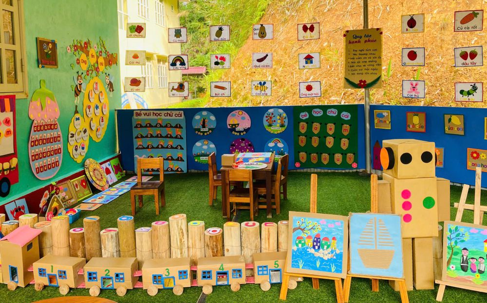 Sau giờ dự giảng, các đại biểu và giáo viên tiếp tục tham quan môi trường giáo dục của nhà trường. Từng góc lớp, từng bộ đồ dùng – đồ chơi, hay các nguyên vật liệu đều được sắp xếp khoa học, tinh tế, đảm bảo tính giáo dục và gần gũi với văn hóa địa phương. Không gian này không chỉ tạo cảm giác thân thiện mà còn khơi gợi sự sáng tạo, phát triển kỹ năng giao tiếp và sự tự lập của trẻ – những yếu tố quan trọng giúp trẻ tự tin trong hành trình học tập sau này.